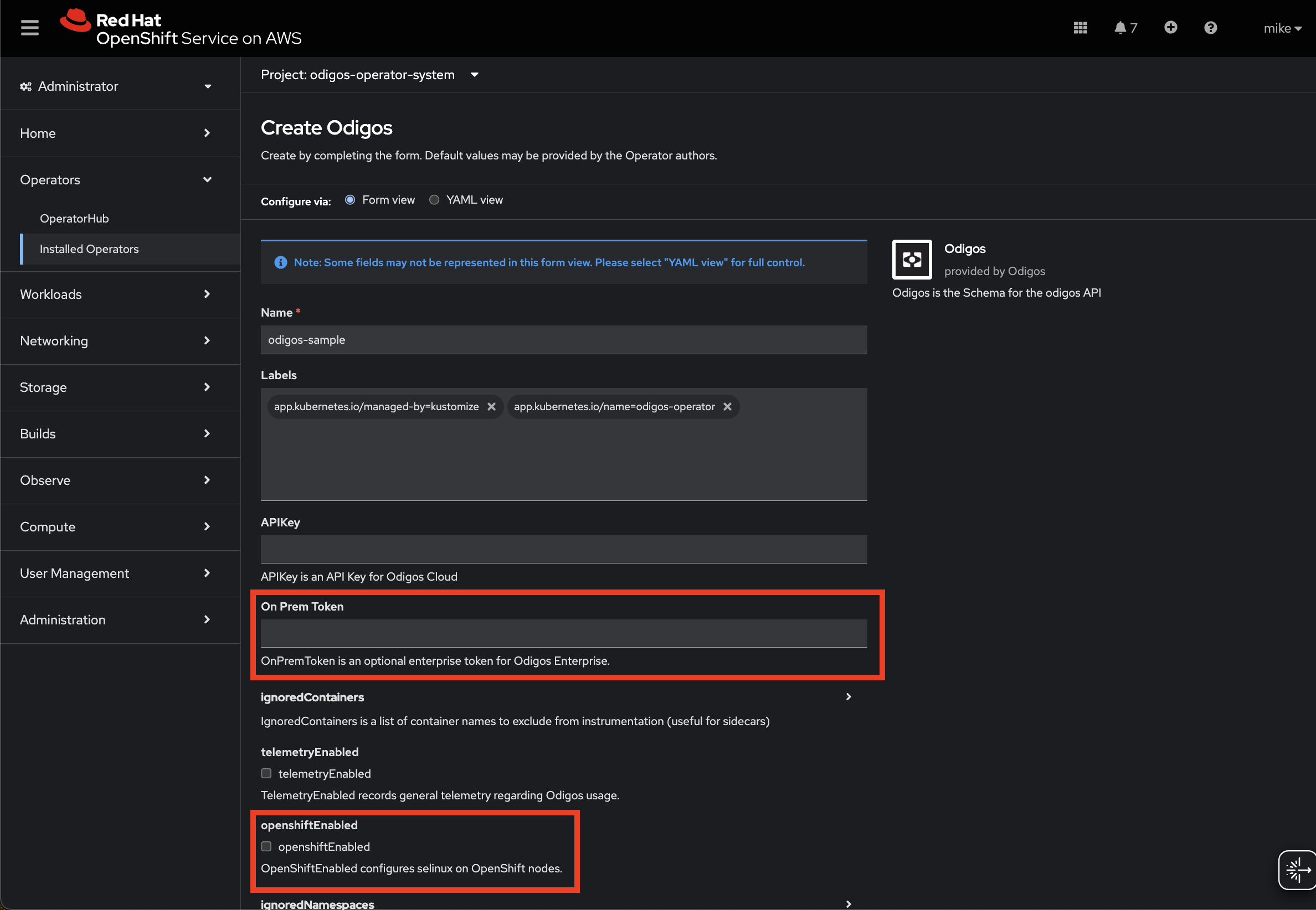 Installing on OpenShift requires additional settings that can be configured based on your installation mode:- Odigos CLI